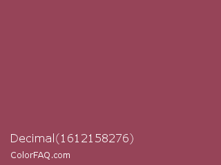 Decimal 1612158276 Color is a normal red color and the nearest color is Vin Rouge #983d61. Hex code #964458 and RGB value is rgb(150,68,88). In RGB color space, this color is composed of 59% red, 27% green, 35% blue, In CMYK color space, this color is composed of 0% cyan, 55% magenta, 41% yellow , 41% black , In HSL color space, this color has a hue angle of 345° , 38% saturation and 43% lightness.