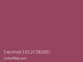 Decimal 1612158290 Color is a normal rose color and the nearest color is Vin Rouge #983d61. Hex code #964460 and RGB value is rgb(150,68,96). In RGB color space, this color is composed of 59% red, 27% green, 38% blue, In CMYK color space, this color is composed of 0% cyan, 55% magenta, 36% yellow , 41% black , In HSL color space, this color has a hue angle of 340° , 38% saturation and 43% lightness.