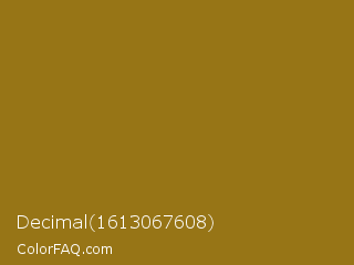 Decimal 1613067608 Color is a normal orange color and the nearest color is Sand Dune #967117. Hex code #977516 and RGB value is rgb(151,117,22). In RGB color space, this color is composed of 59% red, 46% green, 9% blue, In CMYK color space, this color is composed of 0% cyan, 23% magenta, 85% yellow , 41% black , In HSL color space, this color has a hue angle of 44° , 75% saturation and 34% lightness.