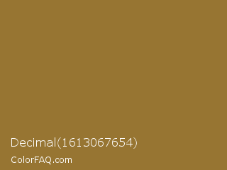 Decimal 1613067654 Color is a normal orange color and the nearest color is Metallic Sunburst #9c7c38. Hex code #977532 and RGB value is rgb(151,117,50). In RGB color space, this color is composed of 59% red, 46% green, 20% blue, In CMYK color space, this color is composed of 0% cyan, 23% magenta, 67% yellow , 41% black , In HSL color space, this color has a hue angle of 40° , 50% saturation and 39% lightness.