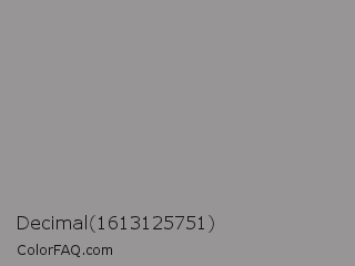 Decimal 1613125751 Color is a normal red color and the nearest color is Mountain Mist #959396. Hex code #979595 and RGB value is rgb(151,149,149). In RGB color space, this color is composed of 59% red, 58% green, 58% blue, In CMYK color space, this color is composed of 0% cyan, 1% magenta, 1% yellow , 41% black , In HSL color space, this color has a hue angle of 0° , 1% saturation and 59% lightness.