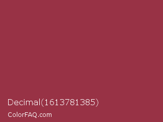 Decimal 1613781385 Color is a normal red color and the nearest color is Smoky Topaz #933d41. Hex code #983245 and RGB value is rgb(152,50,69). In RGB color space, this color is composed of 60% red, 20% green, 27% blue, In CMYK color space, this color is composed of 0% cyan, 67% magenta, 55% yellow , 40% black , In HSL color space, this color has a hue angle of 349° , 50% saturation and 40% lightness.