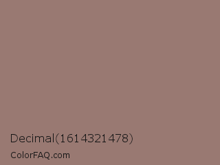 Decimal 1614321478 Color is a normal red color and the nearest color is Burnished Brown #a17a74. Hex code #997972 and RGB value is rgb(153,121,114). In RGB color space, this color is composed of 60% red, 47% green, 45% blue, In CMYK color space, this color is composed of 0% cyan, 21% magenta, 25% yellow , 40% black , In HSL color space, this color has a hue angle of 11° , 16% saturation and 52% lightness.