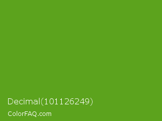 Decimal 101126249 Color is a normal green color and the nearest color is Christi #67a712. Hex code #5ca31d and RGB value is rgb(92,163,29). In RGB color space, this color is composed of 36% red, 64% green, 11% blue, In CMYK color space, this color is composed of 44% cyan, 0% magenta, 82% yellow , 36% black , In HSL color space, this color has a hue angle of 92° , 70% saturation and 38% lightness.