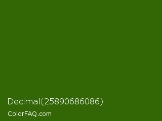 Decimal 25890686086 Color is a very dark green color and the nearest color is Dell #396413. Hex code #336706 and RGB value is rgb(51,103,6). In RGB color space, this color is composed of 20% red, 40% green, 2% blue, In CMYK color space, this color is composed of 50% cyan, 0% magenta, 94% yellow , 60% black , In HSL color space, this color has a hue angle of 92° , 89% saturation and 21% lightness.