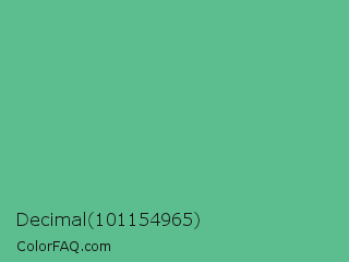 Decimal 101154965 Color is a normal green color and the nearest color is Silver Tree #66b58f. Hex code #5cbe8f and RGB value is rgb(92,190,143). In RGB color space, this color is composed of 36% red, 75% green, 56% blue, In CMYK color space, this color is composed of 52% cyan, 0% magenta, 25% yellow , 25% black , In HSL color space, this color has a hue angle of 151° , 43% saturation and 55% lightness.