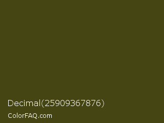 Decimal 25909367876 Color is a very dark yellow color and the nearest color is Thatch Green #403d19. Hex code #454514 and RGB value is rgb(69,69,20). In RGB color space, this color is composed of 27% red, 27% green, 8% blue, In CMYK color space, this color is composed of 0% cyan, 0% magenta, 71% yellow , 73% black , In HSL color space, this color has a hue angle of 60° , 55% saturation and 17% lightness.