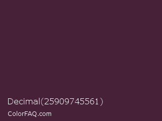 Decimal 25909745561 Color is a very dark magenta color and the nearest color is Livid Brown #4d282e. Hex code #462137 and RGB value is rgb(70,33,55). In RGB color space, this color is composed of 27% red, 13% green, 22% blue, In CMYK color space, this color is composed of 0% cyan, 53% magenta, 21% yellow , 73% black , In HSL color space, this color has a hue angle of 324° , 36% saturation and 20% lightness.