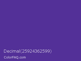 Decimal 25924362599 Color is a normal indigo color and the nearest color is Blue Magenta Violet #553592. Hex code #523097 and RGB value is rgb(82,48,151). In RGB color space, this color is composed of 32% red, 19% green, 59% blue, In CMYK color space, this color is composed of 46% cyan, 68% magenta, 0% yellow , 41% black , In HSL color space, this color has a hue angle of 260° , 52% saturation and 39% lightness.