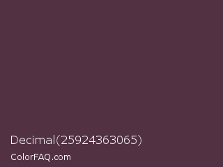 Decimal 25924363065 Color is a dark magenta color and the nearest color is Matterhorn #4e3b41. Hex code #523143 and RGB value is rgb(82,49,67). In RGB color space, this color is composed of 32% red, 19% green, 26% blue, In CMYK color space, this color is composed of 0% cyan, 40% magenta, 18% yellow , 68% black , In HSL color space, this color has a hue angle of 327° , 25% saturation and 26% lightness.