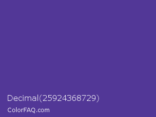 Decimal 25924368729 Color is a normal indigo color and the nearest color is Gigas #523c94. Hex code #523797 and RGB value is rgb(82,55,151). In RGB color space, this color is composed of 32% red, 22% green, 59% blue, In CMYK color space, this color is composed of 46% cyan, 64% magenta, 0% yellow , 41% black , In HSL color space, this color has a hue angle of 257° , 47% saturation and 40% lightness.