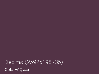 Decimal 25925198736 Color is a dark magenta color and the nearest color is Matterhorn #4e3b41. Hex code #533346 and RGB value is rgb(83,51,70). In RGB color space, this color is composed of 33% red, 20% green, 27% blue, In CMYK color space, this color is composed of 0% cyan, 39% magenta, 16% yellow , 67% black , In HSL color space, this color has a hue angle of 324° , 24% saturation and 26% lightness.