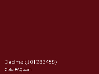 Decimal 101283458 Color is a very dark red color and the nearest color is Heath #541012. Hex code #5d0b12 and RGB value is rgb(93,11,18). In RGB color space, this color is composed of 36% red, 4% green, 7% blue, In CMYK color space, this color is composed of 0% cyan, 88% magenta, 81% yellow , 64% black , In HSL color space, this color has a hue angle of 355° , 79% saturation and 20% lightness.