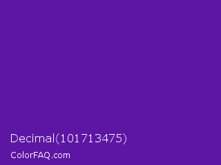 Decimal 101713475 Color is a normal violet color and the nearest color is Daisy Bush #4f2398. Hex code #5d16a3 and RGB value is rgb(93,22,163). In RGB color space, this color is composed of 36% red, 9% green, 64% blue, In CMYK color space, this color is composed of 43% cyan, 87% magenta, 0% yellow , 36% black , In HSL color space, this color has a hue angle of 270° , 76% saturation and 36% lightness.