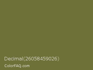 Decimal 26058459026 Color is a normal yellow color and the nearest color is Yellow Metal #716338. Hex code #707138 and RGB value is rgb(112,113,56). In RGB color space, this color is composed of 44% red, 44% green, 22% blue, In CMYK color space, this color is composed of 1% cyan, 0% magenta, 50% yellow , 56% black , In HSL color space, this color has a hue angle of 61° , 34% saturation and 33% lightness.
