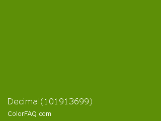 Decimal 101913699 Color is a dark green color and the nearest color is Avocado #568203. Hex code #5d8f07 and RGB value is rgb(93,143,7). In RGB color space, this color is composed of 36% red, 56% green, 3% blue, In CMYK color space, this color is composed of 35% cyan, 0% magenta, 95% yellow , 44% black , In HSL color space, this color has a hue angle of 82° , 91% saturation and 29% lightness.