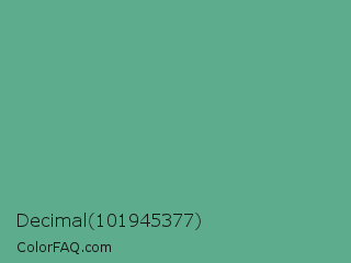 Decimal 101945377 Color is a normal green color and the nearest color is Polished Pine #5da493. Hex code #5dac8d and RGB value is rgb(93,172,141). In RGB color space, this color is composed of 36% red, 67% green, 55% blue, In CMYK color space, this color is composed of 46% cyan, 0% magenta, 18% yellow , 33% black , In HSL color space, this color has a hue angle of 156° , 32% saturation and 52% lightness.