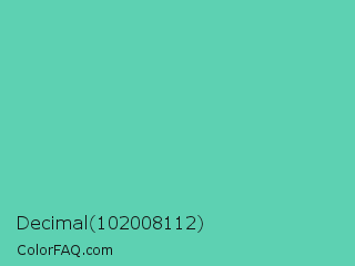 Decimal 102008112 Color is a normal cyan color and the nearest color is Medium Aquamarine #66ddaa. Hex code #5dd1b2 and RGB value is rgb(93,209,178). In RGB color space, this color is composed of 36% red, 82% green, 70% blue, In CMYK color space, this color is composed of 56% cyan, 0% magenta, 15% yellow , 18% black , In HSL color space, this color has a hue angle of 164° , 56% saturation and 59% lightness.