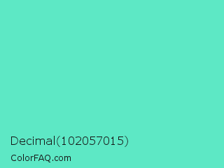 Decimal 102057015 Color is a light cyan color and the nearest color is Downy #6fd0c5. Hex code #5de8c5 and RGB value is rgb(93,232,197). In RGB color space, this color is composed of 36% red, 91% green, 77% blue, In CMYK color space, this color is composed of 60% cyan, 0% magenta, 15% yellow , 9% black , In HSL color space, this color has a hue angle of 165° , 75% saturation and 64% lightness.