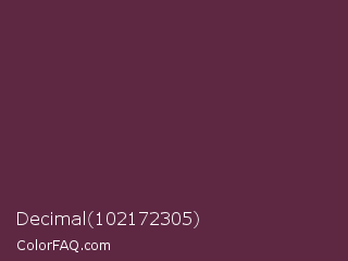 Decimal 102172305 Color is a dark rose color and the nearest color is Tawny Port #692545. Hex code #5e2843 and RGB value is rgb(94,40,67). In RGB color space, this color is composed of 37% red, 16% green, 26% blue, In CMYK color space, this color is composed of 0% cyan, 57% magenta, 29% yellow , 63% black , In HSL color space, this color has a hue angle of 330° , 40% saturation and 26% lightness.