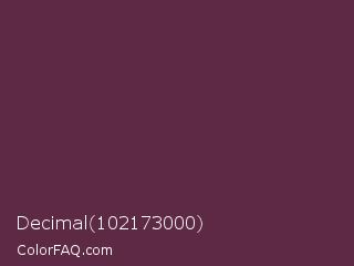 Decimal 102173000 Color is a dark rose color and the nearest color is Tawny Port #692545. Hex code #5e2944 and RGB value is rgb(94,41,68). In RGB color space, this color is composed of 37% red, 16% green, 27% blue, In CMYK color space, this color is composed of 0% cyan, 56% magenta, 28% yellow , 63% black , In HSL color space, this color has a hue angle of 329° , 39% saturation and 26% lightness.