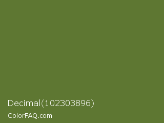 Decimal 102303896 Color is a normal green color and the nearest color is Dark Olive Green #556b2f. Hex code #5e7732 and RGB value is rgb(94,119,50). In RGB color space, this color is composed of 37% red, 47% green, 20% blue, In CMYK color space, this color is composed of 21% cyan, 0% magenta, 58% yellow , 53% black , In HSL color space, this color has a hue angle of 82° , 41% saturation and 33% lightness.