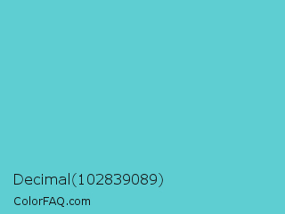 Decimal 102839089 Color is a normal cyan color and the nearest color is Viking #64ccdb. Hex code #5eced3 and RGB value is rgb(94,206,211). In RGB color space, this color is composed of 37% red, 81% green, 83% blue, In CMYK color space, this color is composed of 55% cyan, 2% magenta, 0% yellow , 17% black , In HSL color space, this color has a hue angle of 183° , 57% saturation and 60% lightness.