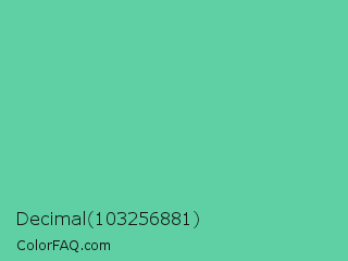 Decimal 103256881 Color is a normal green color and the nearest color is Medium Aquamarine #66ddaa. Hex code #5fd0a3 and RGB value is rgb(95,208,163). In RGB color space, this color is composed of 37% red, 82% green, 64% blue, In CMYK color space, this color is composed of 54% cyan, 0% magenta, 22% yellow , 18% black , In HSL color space, this color has a hue angle of 156° , 55% saturation and 59% lightness.