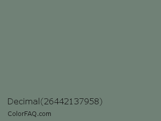 Decimal 26442137958 Color is a normal green color and the nearest color is Smoke #738276. Hex code #708176 and RGB value is rgb(112,129,118). In RGB color space, this color is composed of 44% red, 51% green, 46% blue, In CMYK color space, this color is composed of 13% cyan, 0% magenta, 9% yellow , 49% black , In HSL color space, this color has a hue angle of 141° , 7% saturation and 47% lightness.
