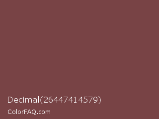 Decimal 26447414579 Color is a normal red color and the nearest color is Tuscan Red #7c4848. Hex code #784345 and RGB value is rgb(120,67,69). In RGB color space, this color is composed of 47% red, 26% green, 27% blue, In CMYK color space, this color is composed of 0% cyan, 44% magenta, 43% yellow , 53% black , In HSL color space, this color has a hue angle of 358° , 28% saturation and 37% lightness.