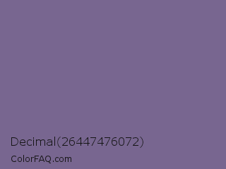 Decimal 26447476072 Color is a normal violet color and the nearest color is Rum #796989. Hex code #786690 and RGB value is rgb(120,102,144). In RGB color space, this color is composed of 47% red, 40% green, 56% blue, In CMYK color space, this color is composed of 17% cyan, 29% magenta, 0% yellow , 44% black , In HSL color space, this color has a hue angle of 266° , 17% saturation and 48% lightness.