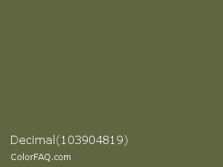 Decimal 103904819 Color is a normal yellow color and the nearest color is Finch #626649. Hex code #606641 and RGB value is rgb(96,102,65). In RGB color space, this color is composed of 38% red, 40% green, 25% blue, In CMYK color space, this color is composed of 6% cyan, 0% magenta, 36% yellow , 60% black , In HSL color space, this color has a hue angle of 70° , 22% saturation and 33% lightness.