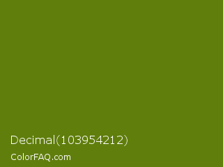 Decimal 103954212 Color is a dark lime color and the nearest color is Avocado #568203. Hex code #607e0c and RGB value is rgb(96,126,12). In RGB color space, this color is composed of 38% red, 49% green, 5% blue, In CMYK color space, this color is composed of 24% cyan, 0% magenta, 90% yellow , 51% black , In HSL color space, this color has a hue angle of 76° , 83% saturation and 27% lightness.