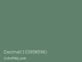 Decimal 103958596 Color is a normal green color and the nearest color is Spring Leaves #578363. Hex code #60826c and RGB value is rgb(96,130,108). In RGB color space, this color is composed of 38% red, 51% green, 42% blue, In CMYK color space, this color is composed of 26% cyan, 0% magenta, 17% yellow , 49% black , In HSL color space, this color has a hue angle of 141° , 15% saturation and 44% lightness.