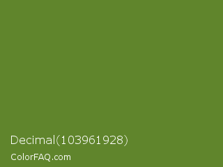 Decimal 103961928 Color is a normal green color and the nearest color is Maximum Green #5e8c31. Hex code #60852c and RGB value is rgb(96,133,44). In RGB color space, this color is composed of 38% red, 52% green, 17% blue, In CMYK color space, this color is composed of 28% cyan, 0% magenta, 67% yellow , 48% black , In HSL color space, this color has a hue angle of 85° , 50% saturation and 35% lightness.
