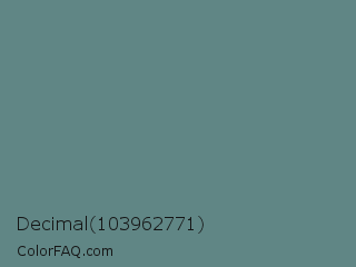 Decimal 103962771 Color is a normal cyan color and the nearest color is Steel Teal #5f8a8b. Hex code #608685 and RGB value is rgb(96,134,133). In RGB color space, this color is composed of 38% red, 53% green, 52% blue, In CMYK color space, this color is composed of 28% cyan, 0% magenta, 1% yellow , 47% black , In HSL color space, this color has a hue angle of 178° , 17% saturation and 45% lightness.