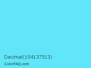 Decimal 104137513 Color is a light cyan color and the nearest color is Turquoise Blue #6cdae7. Hex code #60e5f9 and RGB value is rgb(96,229,249). In RGB color space, this color is composed of 38% red, 90% green, 98% blue, In CMYK color space, this color is composed of 61% cyan, 8% magenta, 0% yellow , 2% black , In HSL color space, this color has a hue angle of 188° , 93% saturation and 68% lightness.