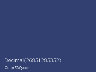 Decimal 26851285352 Color is a normal blue color and the nearest color is San Juan #304b6a. Hex code #314070 and RGB value is rgb(49,64,112). In RGB color space, this color is composed of 19% red, 25% green, 44% blue, In CMYK color space, this color is composed of 56% cyan, 43% magenta, 0% yellow , 56% black , In HSL color space, this color has a hue angle of 226° , 39% saturation and 32% lightness.