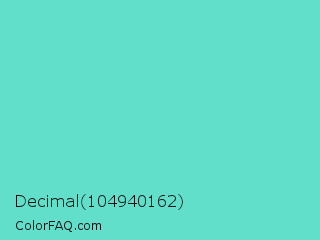 Decimal 104940162 Color is a light cyan color and the nearest color is Downy #6fd0c5. Hex code #61dfca and RGB value is rgb(97,223,202). In RGB color space, this color is composed of 38% red, 87% green, 79% blue, In CMYK color space, this color is composed of 57% cyan, 0% magenta, 9% yellow , 13% black , In HSL color space, this color has a hue angle of 170° , 66% saturation and 63% lightness.