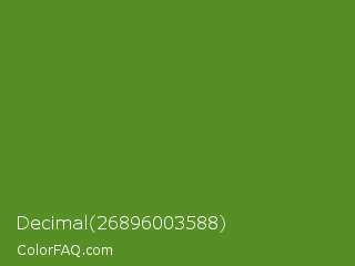 Decimal 26896003588 Color is a normal green color and the nearest color is Vida Loca #549019. Hex code #569024 and RGB value is rgb(86,144,36). In RGB color space, this color is composed of 34% red, 56% green, 14% blue, In CMYK color space, this color is composed of 40% cyan, 0% magenta, 75% yellow , 44% black , In HSL color space, this color has a hue angle of 92° , 60% saturation and 35% lightness.