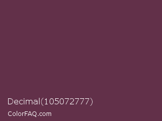 Decimal 105072777 Color is a dark rose color and the nearest color is Wine Dregs #673147. Hex code #623049 and RGB value is rgb(98,48,73). In RGB color space, this color is composed of 38% red, 19% green, 29% blue, In CMYK color space, this color is composed of 0% cyan, 51% magenta, 26% yellow , 62% black , In HSL color space, this color has a hue angle of 330° , 34% saturation and 29% lightness.