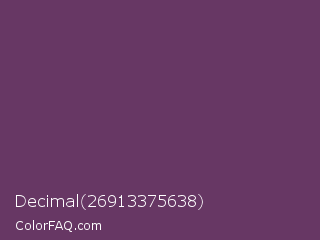 Decimal 26913375638 Color is a normal magenta color and the nearest color is Imperial #602f6b. Hex code #673764 and RGB value is rgb(103,55,100). In RGB color space, this color is composed of 40% red, 22% green, 39% blue, In CMYK color space, this color is composed of 0% cyan, 47% magenta, 3% yellow , 60% black , In HSL color space, this color has a hue angle of 304° , 30% saturation and 31% lightness.