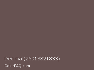 Decimal 26913821833 Color is a normal red color and the nearest color is Wenge #645452. Hex code #675251 and RGB value is rgb(103,82,81). In RGB color space, this color is composed of 40% red, 32% green, 32% blue, In CMYK color space, this color is composed of 0% cyan, 20% magenta, 21% yellow , 60% black , In HSL color space, this color has a hue angle of 3° , 12% saturation and 36% lightness.