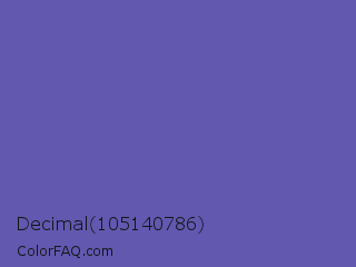 Decimal 105140786 Color is a normal indigo color and the nearest color is Blue Violet #6456b7. Hex code #6258b0 and RGB value is rgb(98,88,176). In RGB color space, this color is composed of 38% red, 35% green, 69% blue, In CMYK color space, this color is composed of 44% cyan, 50% magenta, 0% yellow , 31% black , In HSL color space, this color has a hue angle of 247° , 36% saturation and 52% lightness.
