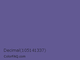 Decimal 105141337 Color is a normal indigo color and the nearest color is Butterfly Bush #624e9a. Hex code #625993 and RGB value is rgb(98,89,147). In RGB color space, this color is composed of 38% red, 35% green, 58% blue, In CMYK color space, this color is composed of 33% cyan, 39% magenta, 0% yellow , 42% black , In HSL color space, this color has a hue angle of 249° , 25% saturation and 46% lightness.