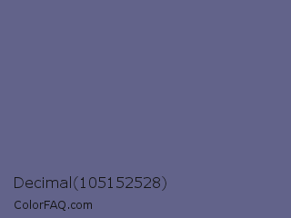 Decimal 105152528 Color is a normal blue color and the nearest color is Dark Blue Gray #666699. Hex code #62638a and RGB value is rgb(98,99,138). In RGB color space, this color is composed of 38% red, 39% green, 54% blue, In CMYK color space, this color is composed of 29% cyan, 28% magenta, 0% yellow , 46% black , In HSL color space, this color has a hue angle of 239° , 17% saturation and 46% lightness.