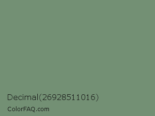 Decimal 26928511016 Color is a normal green color and the nearest color is Laurel #749378. Hex code #739074 and RGB value is rgb(115,144,116). In RGB color space, this color is composed of 45% red, 56% green, 45% blue, In CMYK color space, this color is composed of 20% cyan, 0% magenta, 19% yellow , 44% black , In HSL color space, this color has a hue angle of 122° , 12% saturation and 51% lightness.