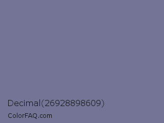 Decimal 26928898609 Color is a normal blue color and the nearest color is Rhythm #777696. Hex code #747497 and RGB value is rgb(116,116,151). In RGB color space, this color is composed of 45% red, 45% green, 59% blue, In CMYK color space, this color is composed of 23% cyan, 23% magenta, 0% yellow , 41% black , In HSL color space, this color has a hue angle of 240° , 14% saturation and 52% lightness.