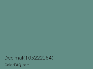 Decimal 105222164 Color is a normal cyan color and the nearest color is Steel Teal #5f8a8b. Hex code #628e86 and RGB value is rgb(98,142,134). In RGB color space, this color is composed of 38% red, 56% green, 53% blue, In CMYK color space, this color is composed of 31% cyan, 0% magenta, 6% yellow , 44% black , In HSL color space, this color has a hue angle of 169° , 18% saturation and 47% lightness.