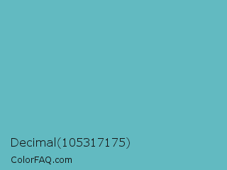 Decimal 105317175 Color is a normal cyan color and the nearest color is Fountain Blue #56b4be. Hex code #62bac1 and RGB value is rgb(98,186,193). In RGB color space, this color is composed of 38% red, 73% green, 76% blue, In CMYK color space, this color is composed of 49% cyan, 4% magenta, 0% yellow , 24% black , In HSL color space, this color has a hue angle of 184° , 43% saturation and 57% lightness.